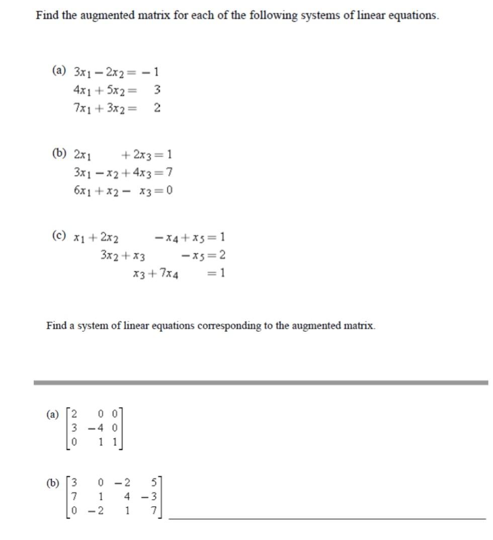 Solved Find The Augmented Matrix For Each Of The Following Chegg Com
